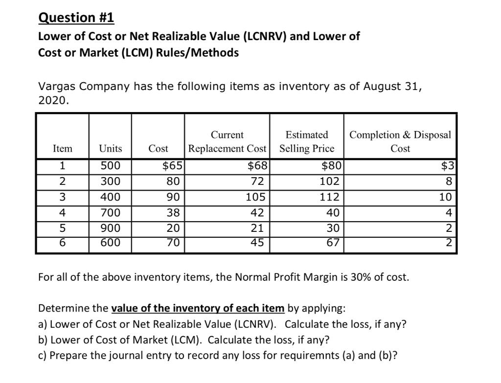 Question 1 Lower Of Cost Or Net Realizable Value Chegg Com